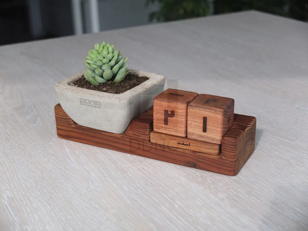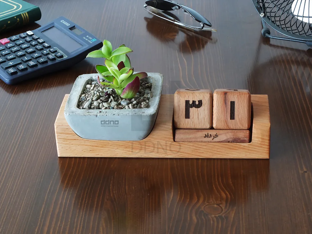 - طراحی چندمنظوره: علاوه بر نمایش تاریخ، گلدان کوچک این محصول امکان کاشت گیاهان کوچک یا گلهای تزئینی را فراهم میکند.