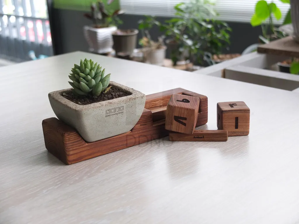 جنس | پایه و تقویم از چوب طبیعی راش – گلدان از بتن با کیفیت |
