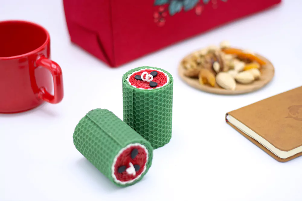 اگر بهدنبال هدیهای خاص، ماندگار و ۱۰۰٪ همخوان با حالوهوای یلدا هستید، «شمع مومی هندوانه» دیدینو دقیقاً برای شما ساخته شده است. این شمع با الهام از رنگها و بافت هندوانه – سبز پوست، قرمزی با طراوت میانه و دانههای تیره – هم چشم را مینوازد و هم سفره یلدایی شما را به مرکز توجه تبدیل میکند. هویتبخشی به برند و خلق تجربهای بهیادماندنی اصلِ کار ماست؛ بنابراین این محصول را هم برای استفاده خانگی و هم برای هدایای تبلیغاتی شب یلدا را ما طراحی کردهایم.