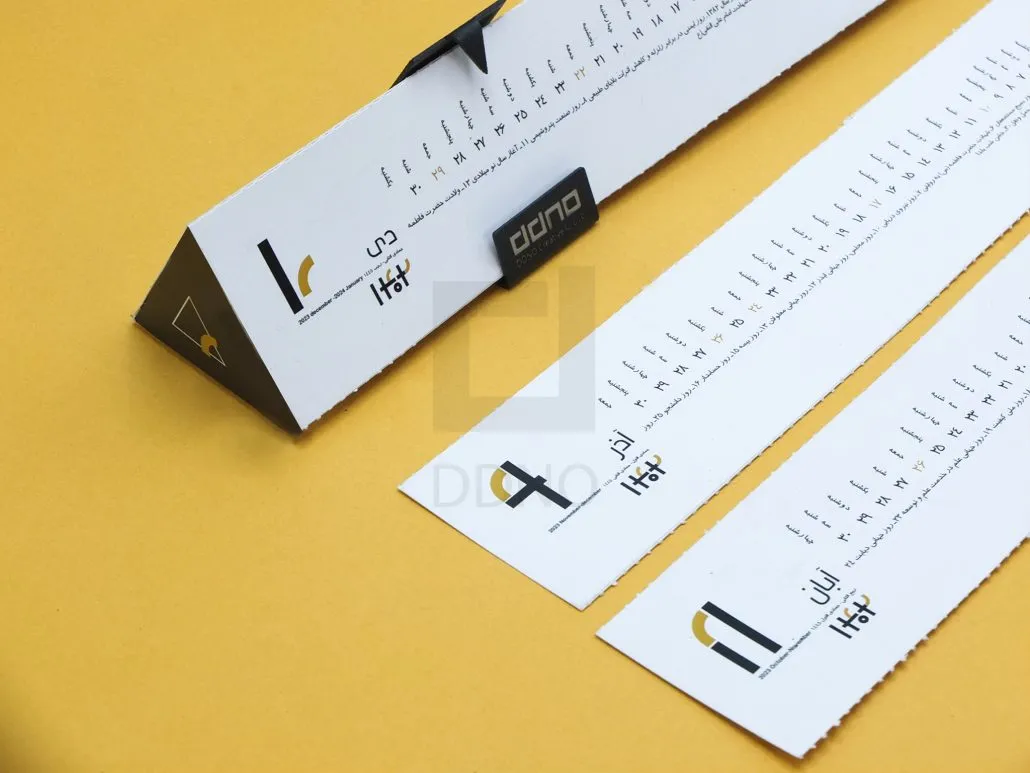 - اثر تبلیغاتی واقعی: چون تقویم رومیزی هر روز استفاده میشود، برند شما هم هر روز دیده میشود.